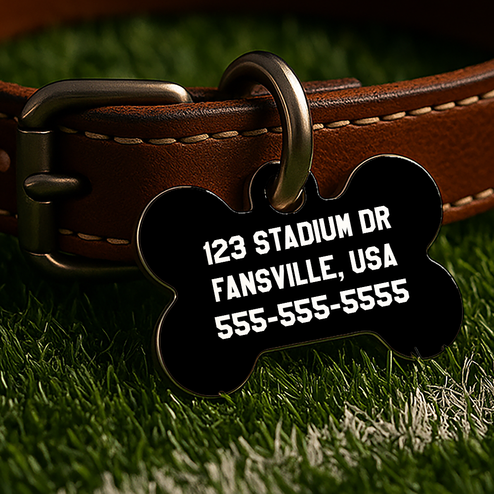 Whether they're tailgating in the backyard or napping through game day, this custom-designed, double-sided ID tag lets your pet show off their school spirit — no logos, just bold colors and classic vibes inspired by college traditions.