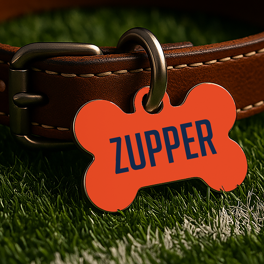 Whether they're tailgating in the backyard or napping through game day, this custom-designed, double-sided ID tag lets your pet show off their school spirit — no logos, just bold colors and classic vibes inspired by college traditions.