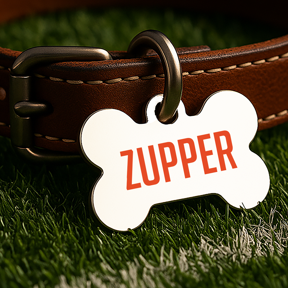 Whether they're tailgating in the backyard or napping through game day, this custom-designed, double-sided ID tag lets your pet show off their school spirit — no logos, just bold colors and classic vibes inspired by college traditions.
