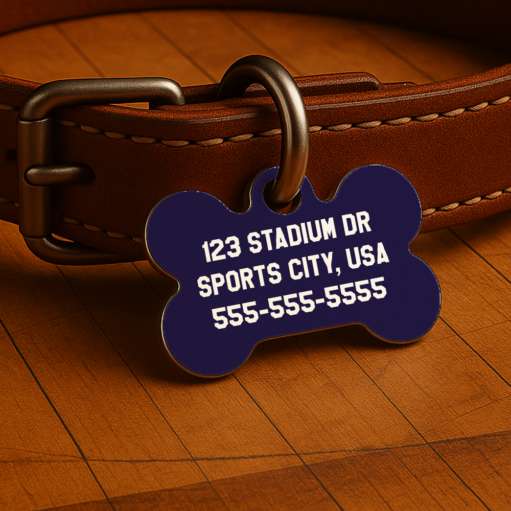 Printed with your pet’s name and contact info on both sides, this tag is waterproof, fade-resistant, and ready for fast breaks, neighborhood walks, or post-game naps on the couch.