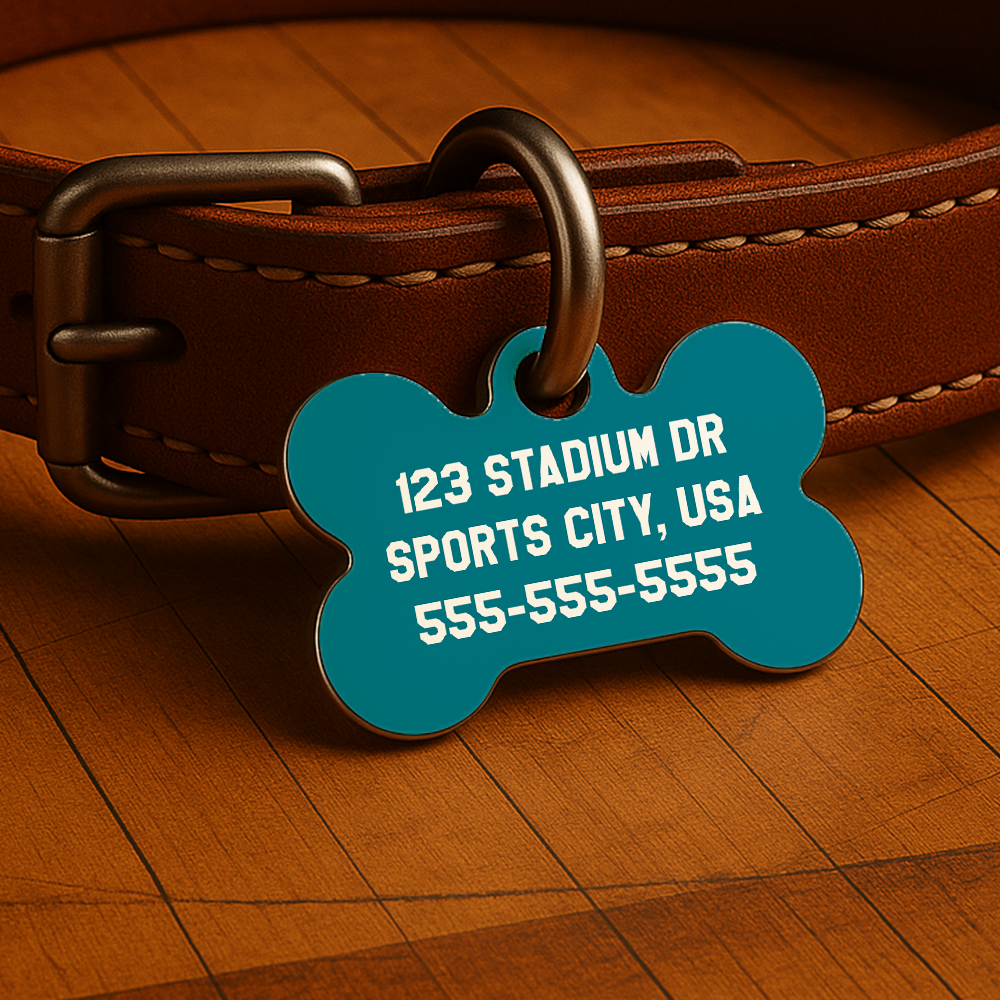Printed with your pet’s name and contact info on both sides, this tag is waterproof, fade-resistant, and ready for fast breaks, neighborhood walks, or post-game naps on the couch.