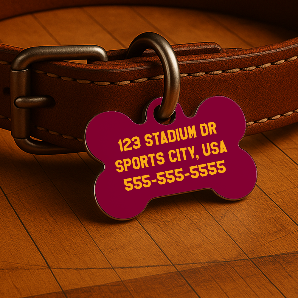 Printed with your pet’s name and contact info on both sides, this tag is waterproof, fade-resistant, and ready for fast breaks, neighborhood walks, or post-game naps on the couch.