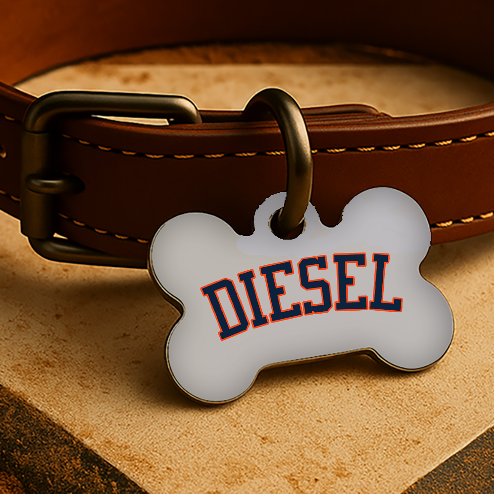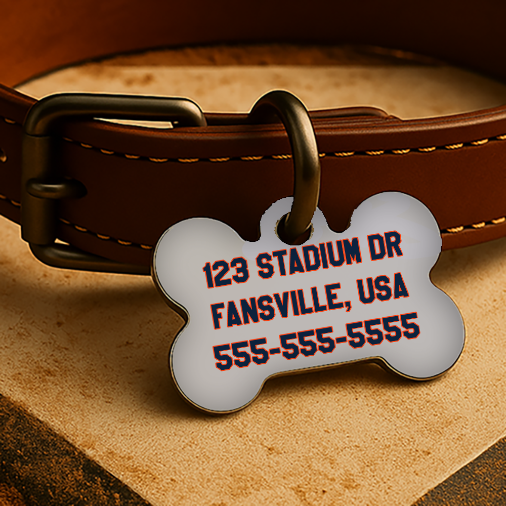 Printed with your pet’s name and contact info on both sides, each tag is waterproof, fade-resistant, and made to last through every inning — from backyard ball games to couch naps during the 7th inning stretch.