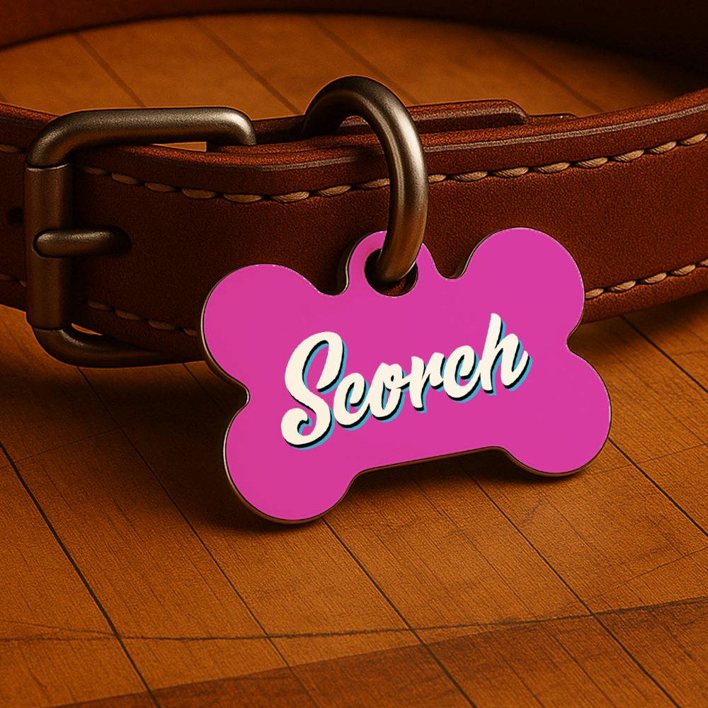 Printed with your pet’s name and contact info on both sides, this tag is waterproof, fade-resistant, and ready for fast breaks, neighborhood walks, or post-game naps on the couch.