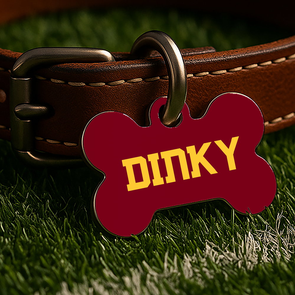 Whether they're tailgating in the backyard or napping through game day, this custom-designed, double-sided ID tag lets your pet show off their school spirit — no logos, just bold colors and classic vibes inspired by college traditions.