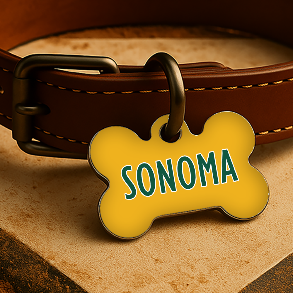 Printed with your pet’s name and contact info on both sides, each tag is waterproof, fade-resistant, and made to last through every inning — from backyard ball games to couch naps during the 7th inning stretch.