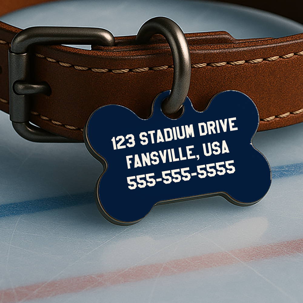 For pups who hustle like it’s the third period, this custom-designed, double-sided ID tag brings big energy without breaking any rules — inspired by classic hockey style and bold team color combos (no logos, just love for the game).